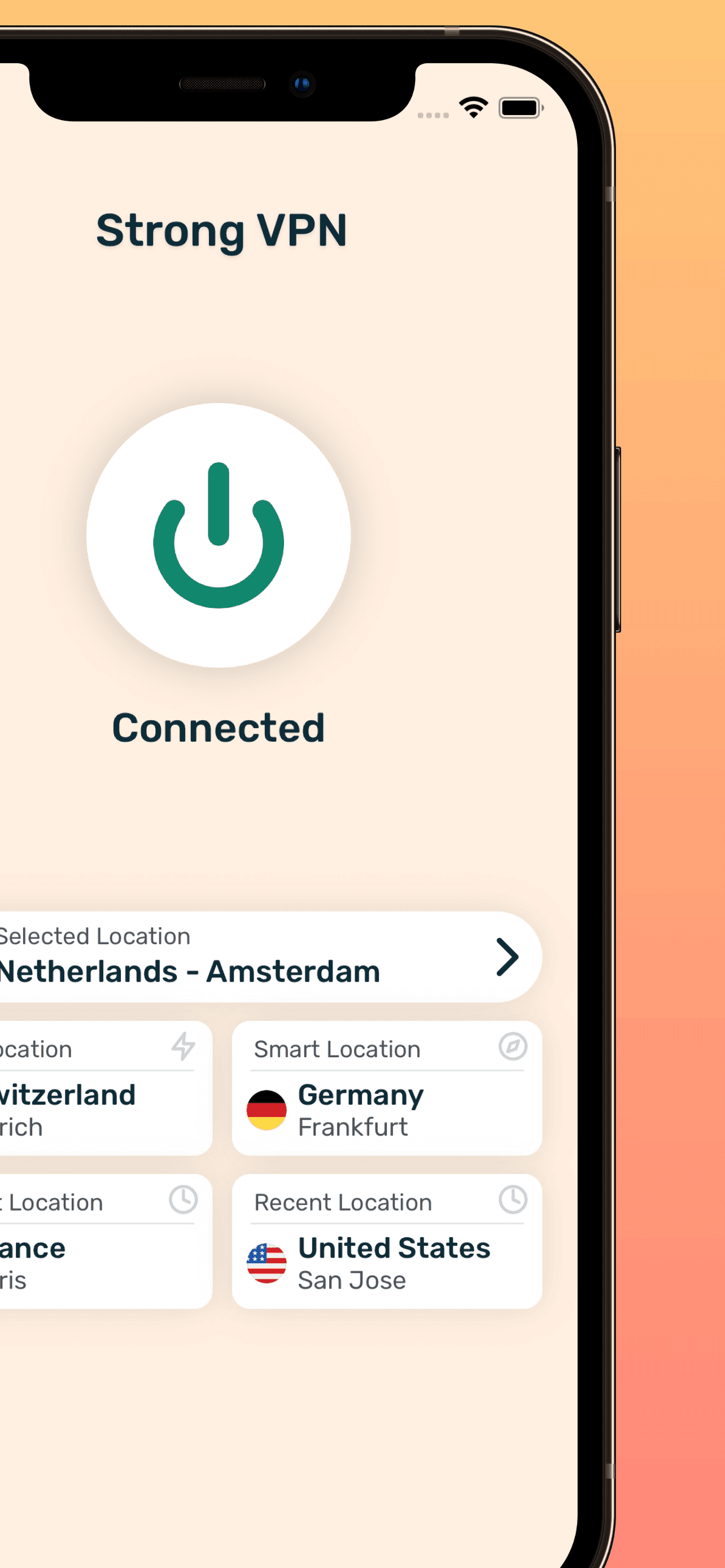 Fast and Secure VPN!Browse the web with your data secure!Unlock TV shows, movies or any other content that is not available in your area!With Strong VPN, you can privately surf the Web and secure your Wi-Fi connection, hide your real IP address and location to make sure you stay anonymous, encrypts your data to protect your network connection data. Try best and fastest VPN service.● 75+ Locations● Strong encryption● Fastest global VPN servers● Providing a secure Wi-Fi hotspot● Access all websites, apps, movies, TV shows, ...● Protect your security and privacy● Easy to use, just one tap to connect● No logs are saved from any users